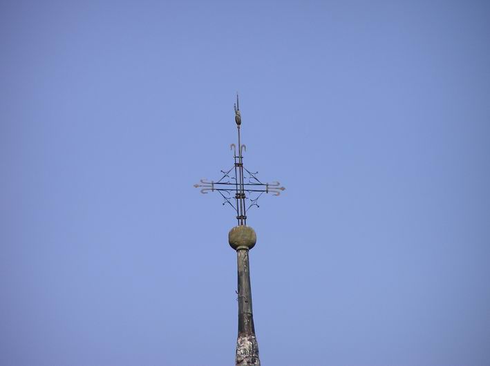 Bild: 15.08.2003 noch ist die Spitze des Turmes (Wetterhahn, Kreuz und Kuppel) im "alten" Zustand